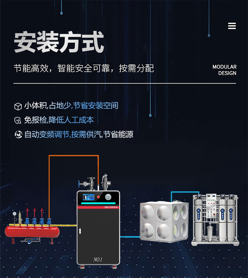 積木式自由組合,按需供氣;蒸汽量:6kg至6T;幾何容積小于30L,無需報檢;獨(dú)特汽水分離器蒸汽干度高達(dá)99%;溫度、壓力、可定制,更多參數(shù)可致電15323300918