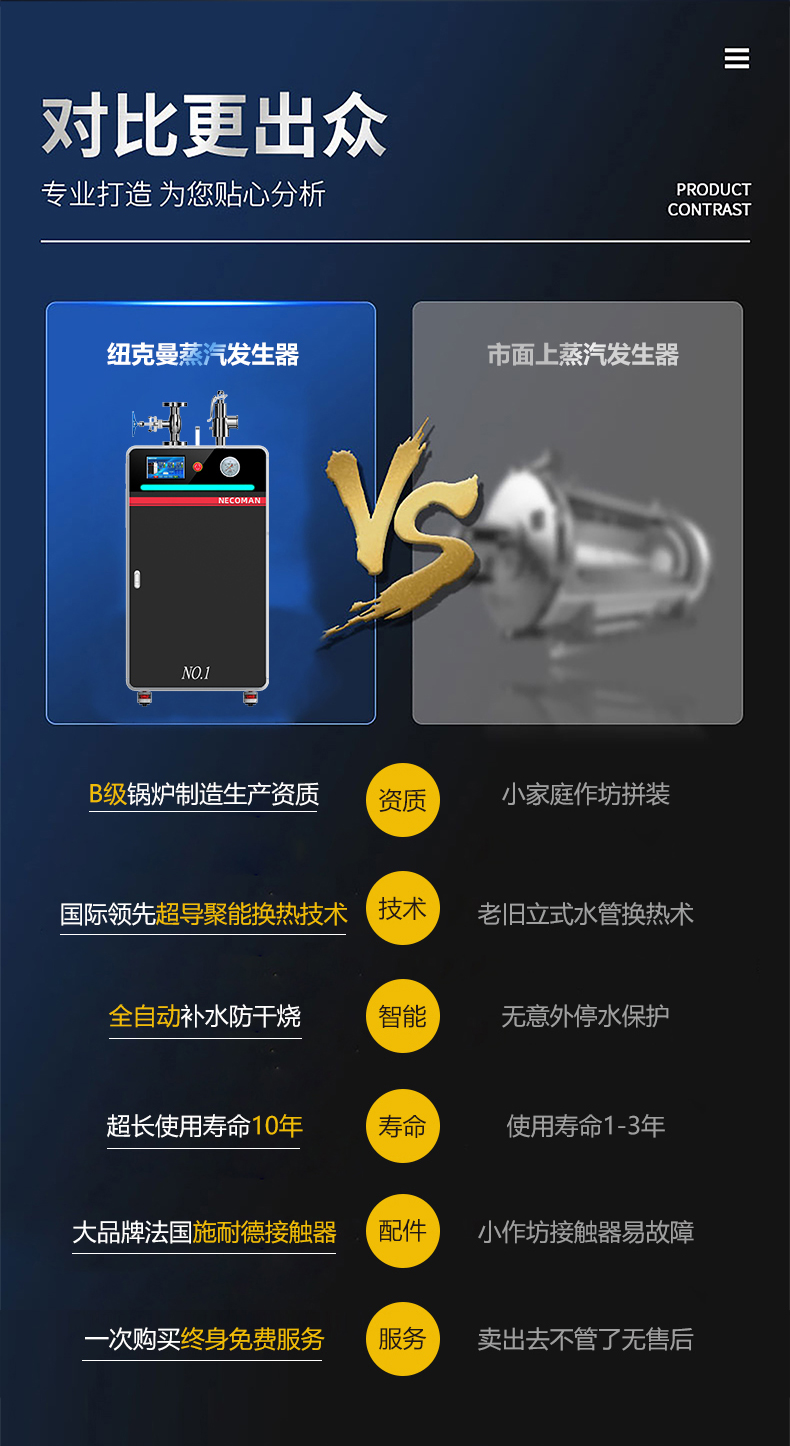 積木式自由組合,按需供氣;蒸汽量:6kg至6T;幾何容積小于30L,無需報檢;獨特汽水分離器蒸汽干度高達99%;溫度、壓力、可定制,更多參數(shù)可致電15323300918