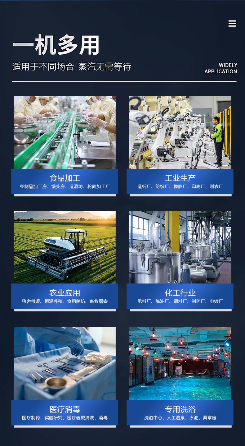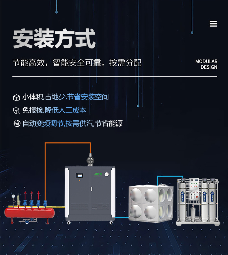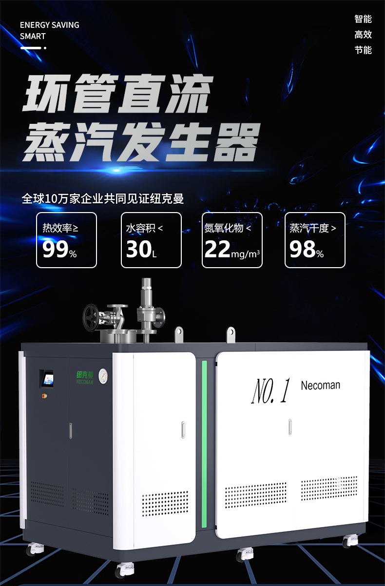 蒸汽量:50kg至6T,無內膽,水容積<29L、產(chǎn)汽快、免報檢,低氮燃燒NOx排放<22mg/m3,符合環(huán)保要求,310S不銹鋼過流件直流環(huán)管結構,達到衛(wèi)生級別,溫度、壓力、可定制,更多參數(shù)可致電15323300918