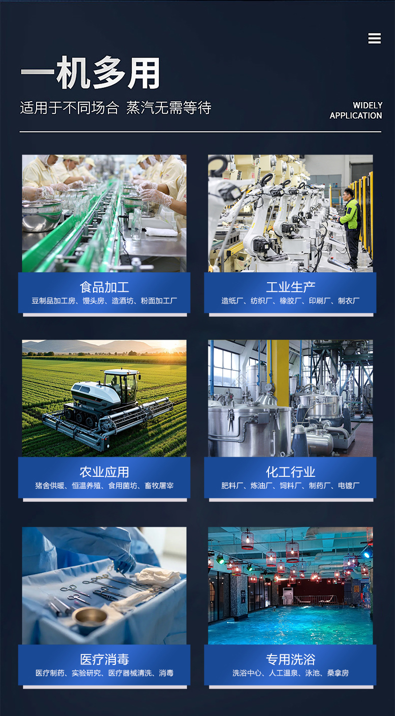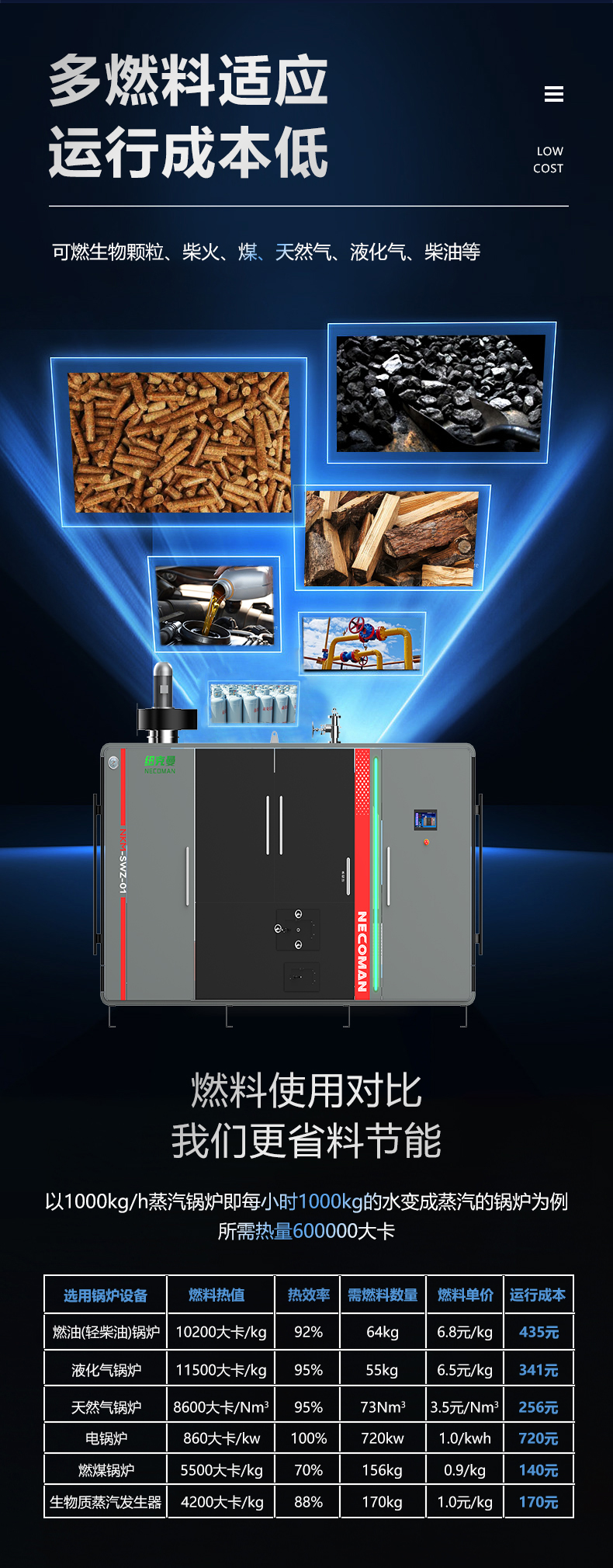 蒸汽量:6kg至6T;適用燃料:天然氣、油、生物顆粒;幾何容積<30L,免監(jiān)檢;大爐門設(shè)計(jì),可燃木塊等木質(zhì)燃料,排煙溫度低、搭配多回程蛇形設(shè)計(jì),壽命長,自主研發(fā)預(yù)制板結(jié)構(gòu),節(jié)省燃料;溫度、壓力、可定制,更多參數(shù)可致電15323300918