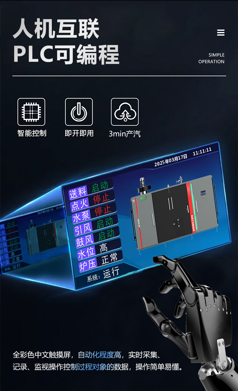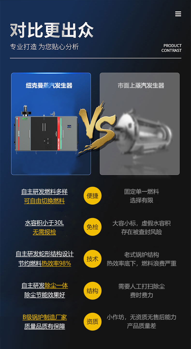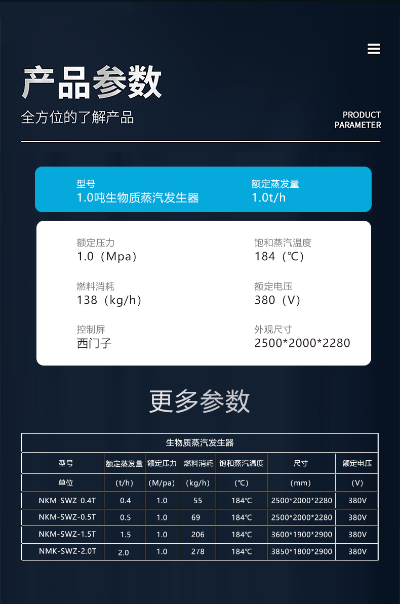 蒸汽量:6kg至6T;適用燃料:天然氣、油、生物顆粒;幾何容積<30L,免監(jiān)檢;大爐門設計,可燃木塊等木質(zhì)燃料,排煙溫度低、搭配多回程蛇形設計,壽命長,自主研發(fā)預制板結(jié)構(gòu),節(jié)省燃料;溫度、壓力、可定制,更多參數(shù)可致電15323300918