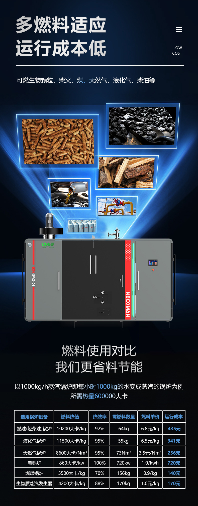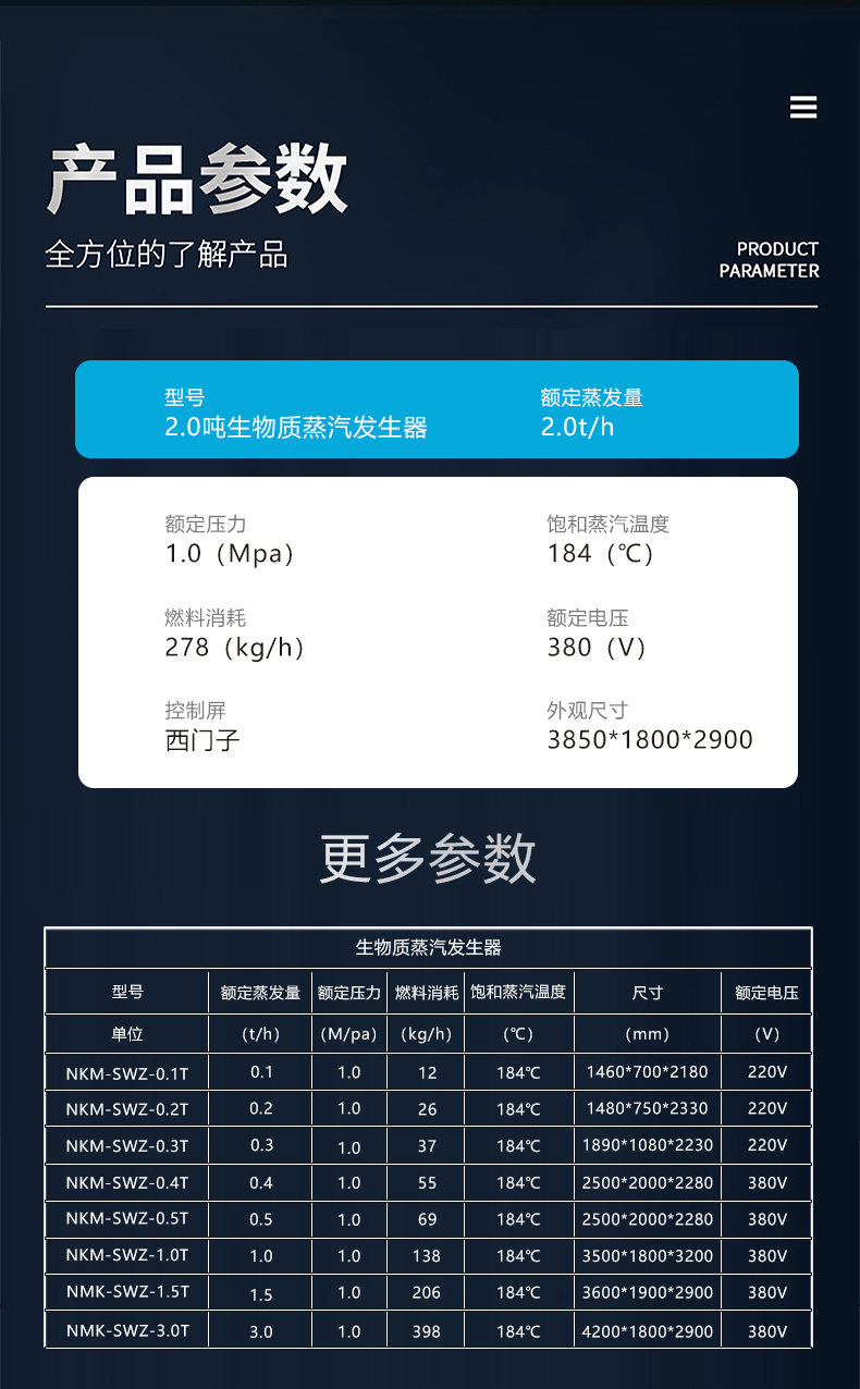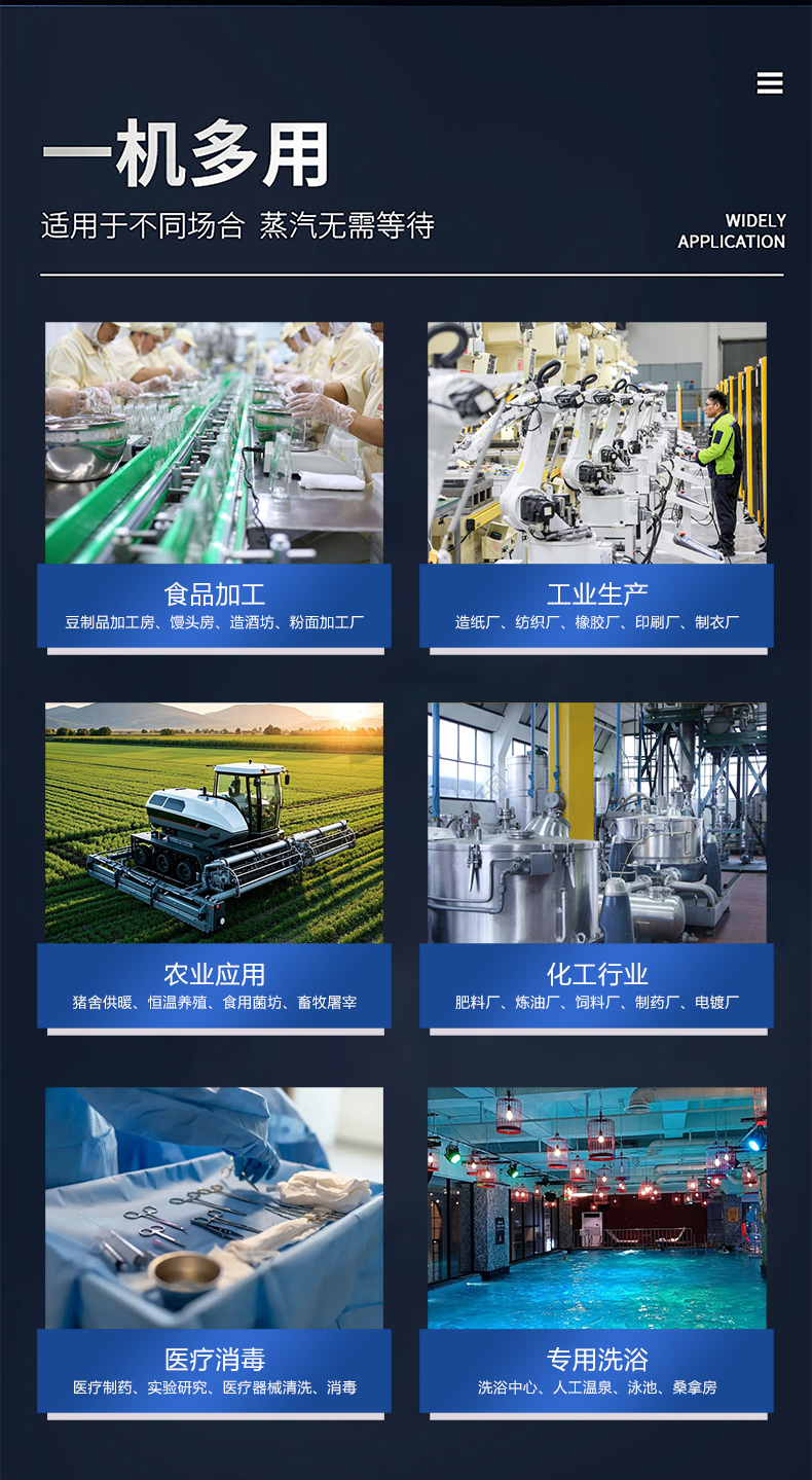 蒸汽量:6kg至6T;適用燃料:天然氣、油、生物顆粒;幾何容積<30L,免監(jiān)檢;大爐門(mén)設(shè)計(jì),可燃木塊等木質(zhì)燃料,排煙溫度低、搭配多回程蛇形設(shè)計(jì),壽命長(zhǎng),自主研發(fā)預(yù)制板結(jié)構(gòu),節(jié)省燃料;溫度、壓力、可定制,更多參數(shù)可致電15323300918