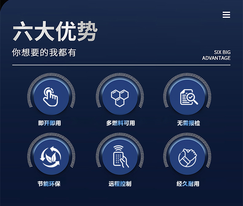 蒸汽量:6kg至6T;適用燃料:天然氣、油、生物顆粒;幾何容積<30L,免監(jiān)檢;大爐門設(shè)計,可燃木塊等木質(zhì)燃料,排煙溫度低、搭配多回程蛇形設(shè)計,壽命長,自主研發(fā)預(yù)制板結(jié)構(gòu),節(jié)省燃料;溫度、壓力、可定制,更多參數(shù)可致電15323300918